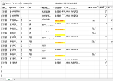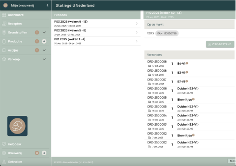 Vanuit de verkoopfacturen zitten alle gegevens in BrouwBroeder die je nodig hebt om per periode aan te geven welke producten je op de markt hebt gebracht. Dankzij het aangifte overzicht en het export-bestand, wordt zelfs het-veel-te-ingewikkelde-statiegeld-systeem eenvoudig!