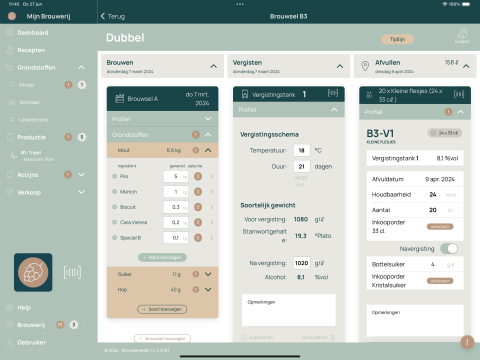 Maak van te voren een planning van de brouwsels die je wilt maken en voer de benodigde ingredienten in. Deze worden gereserveerd en zichtbaar bij het voorraadbeheer. Je kunt dan precies zien wat je nog mist om aan de slag te kunnen.
